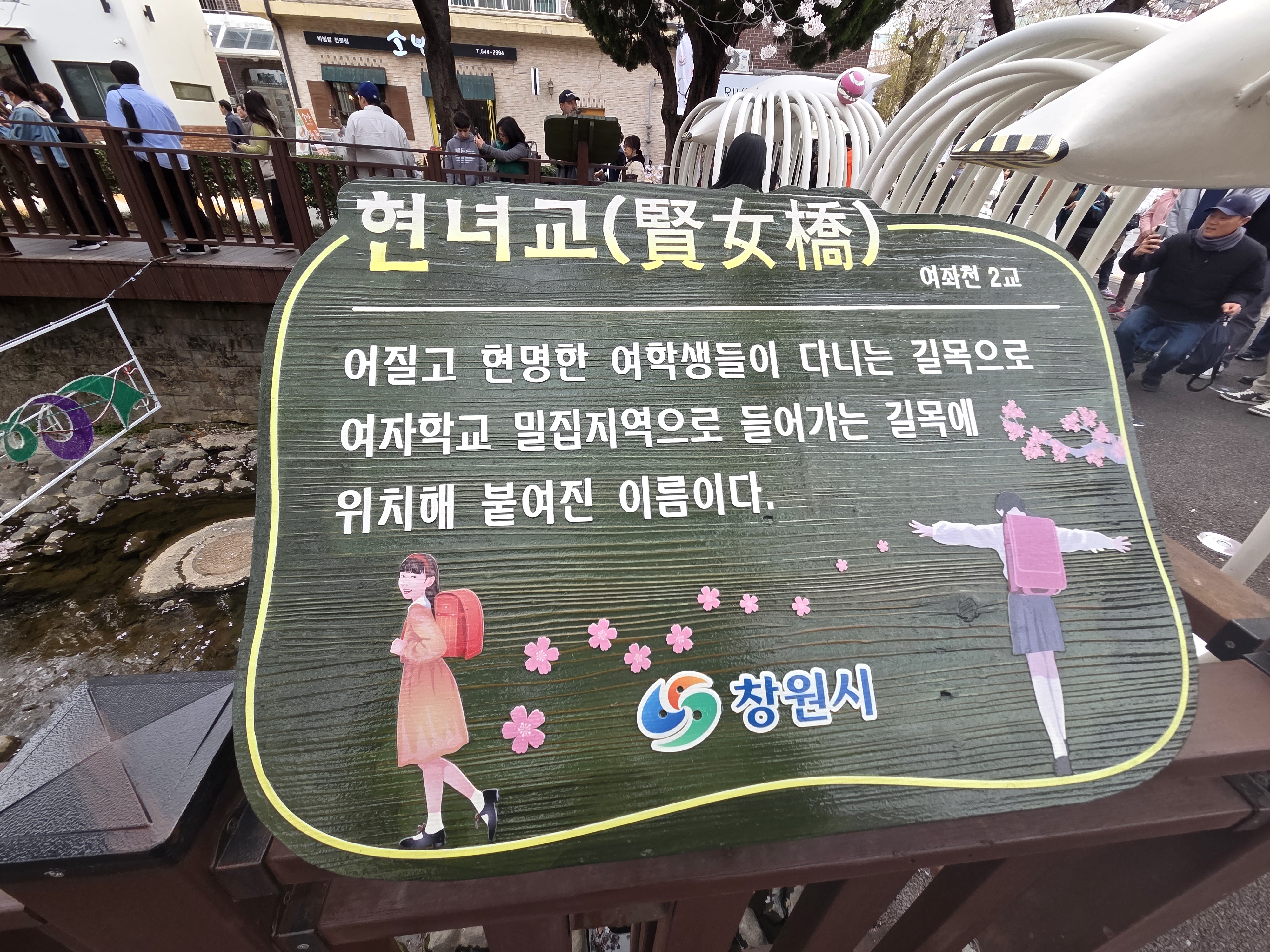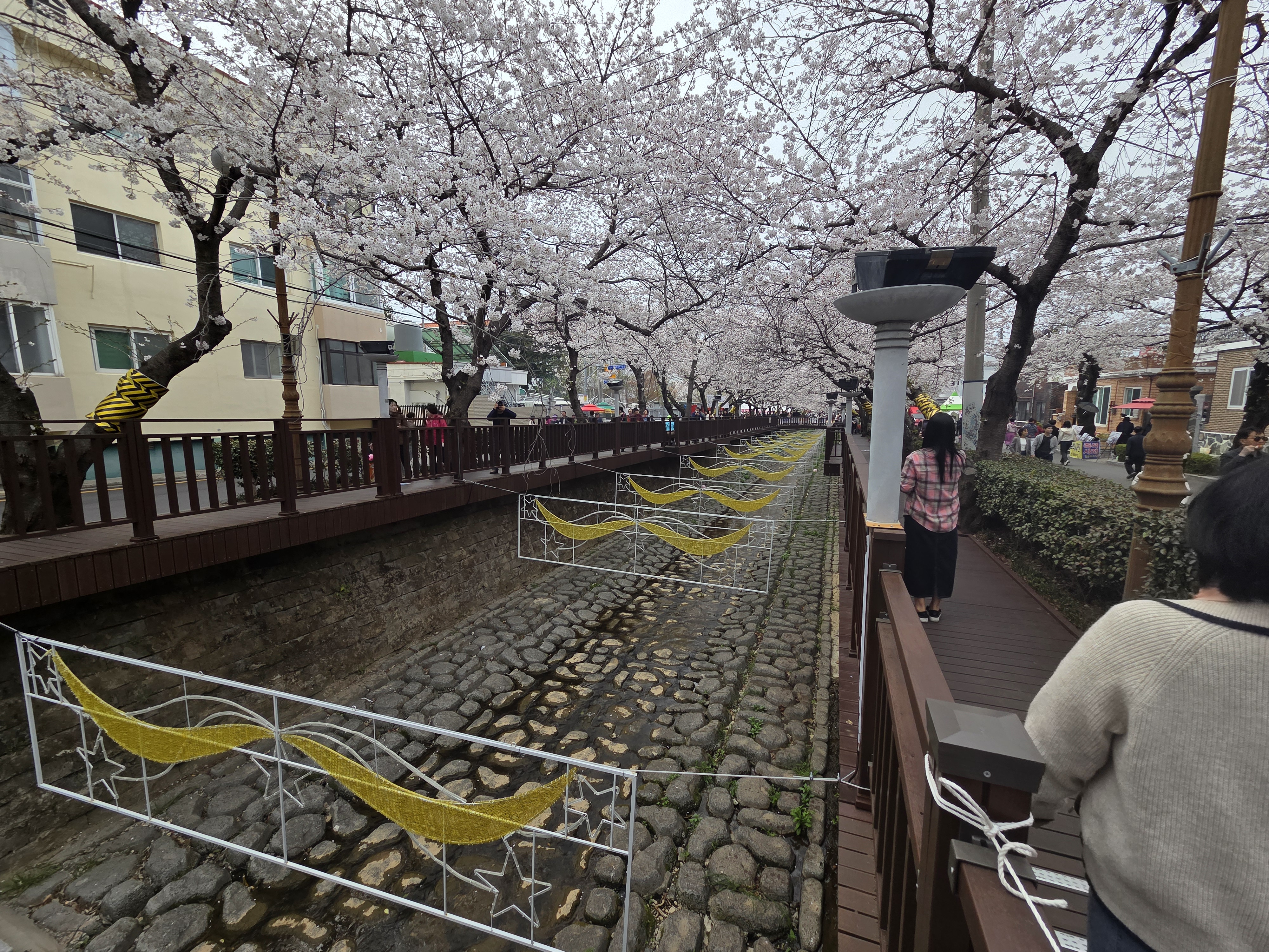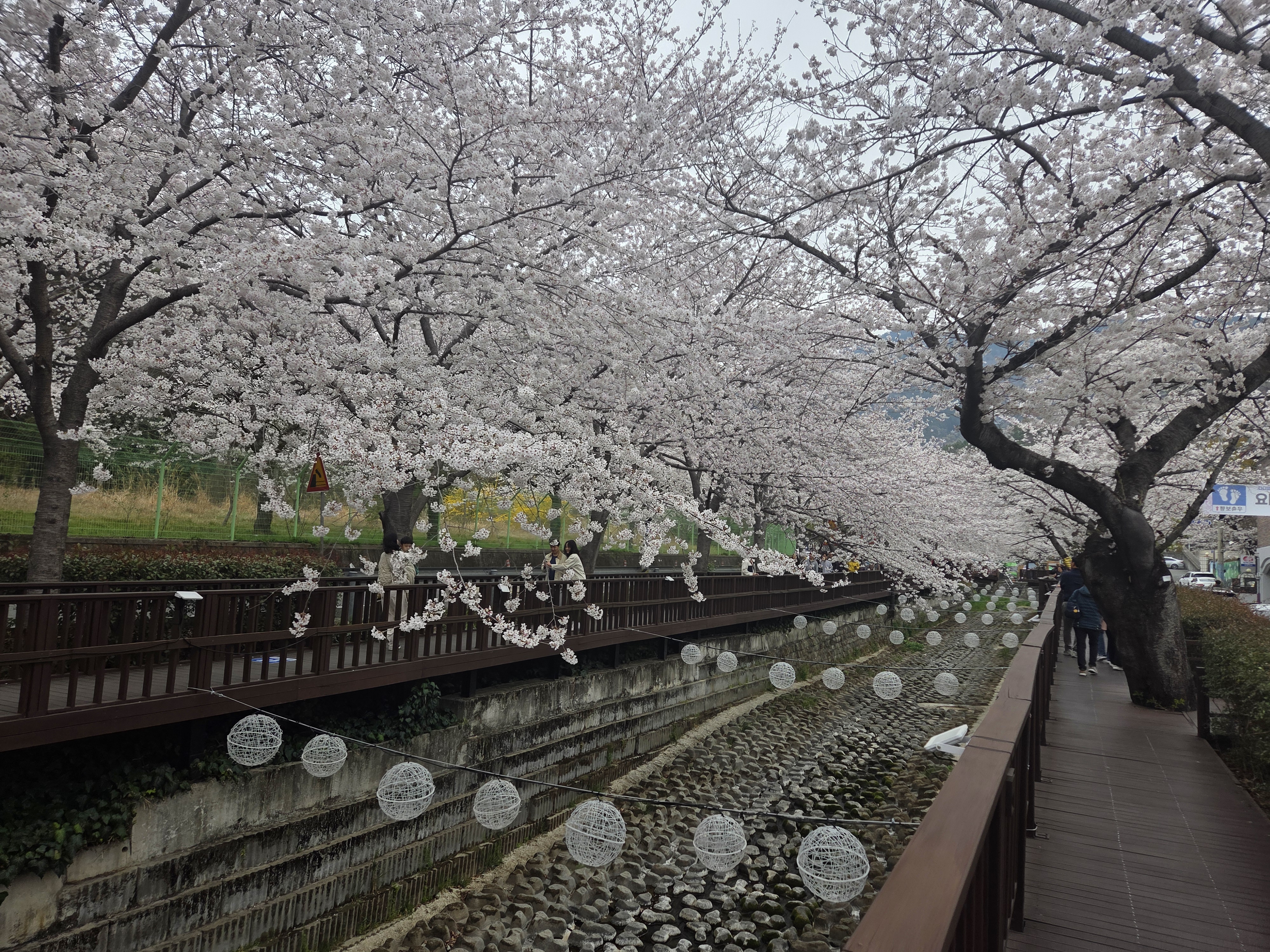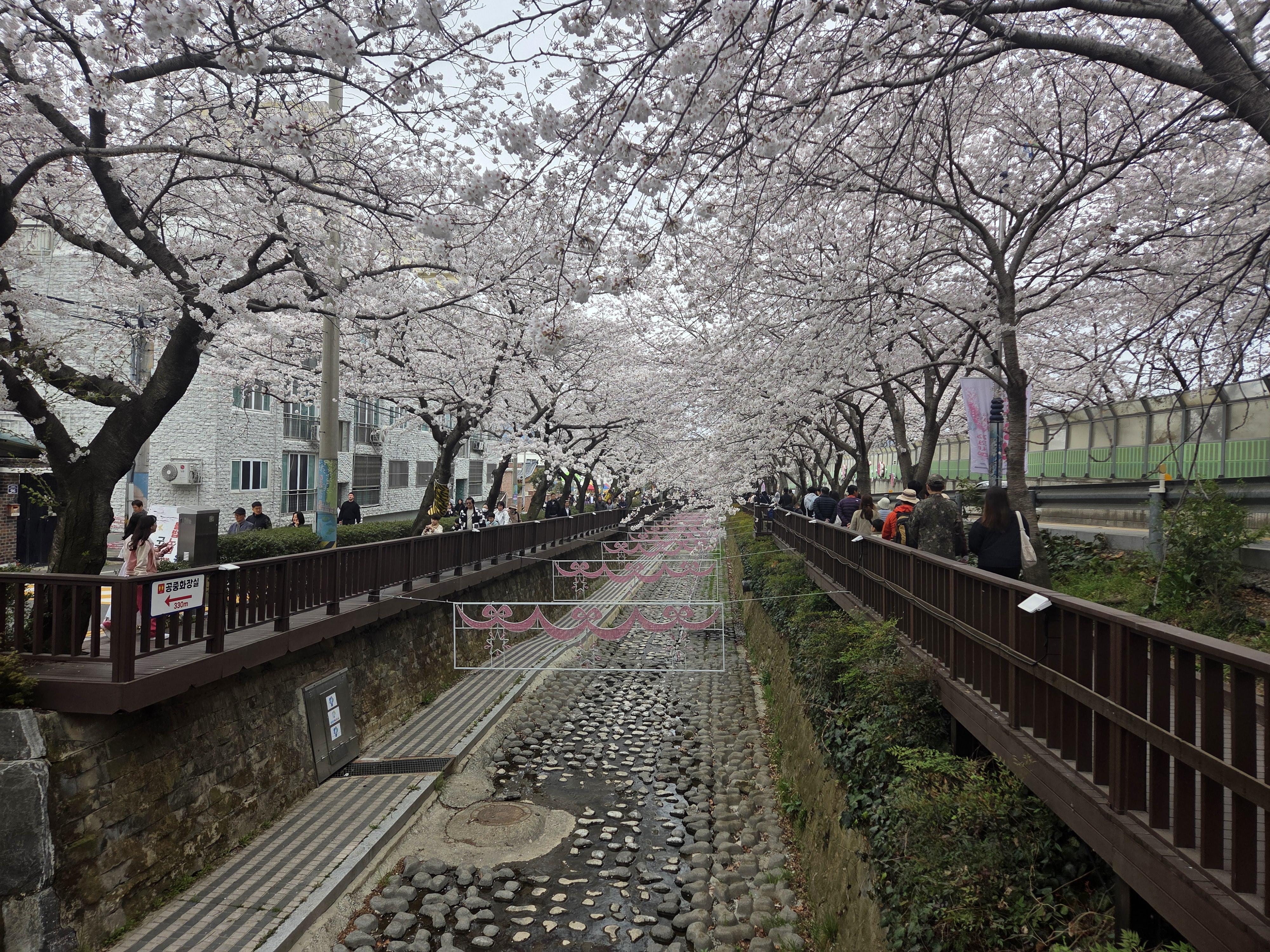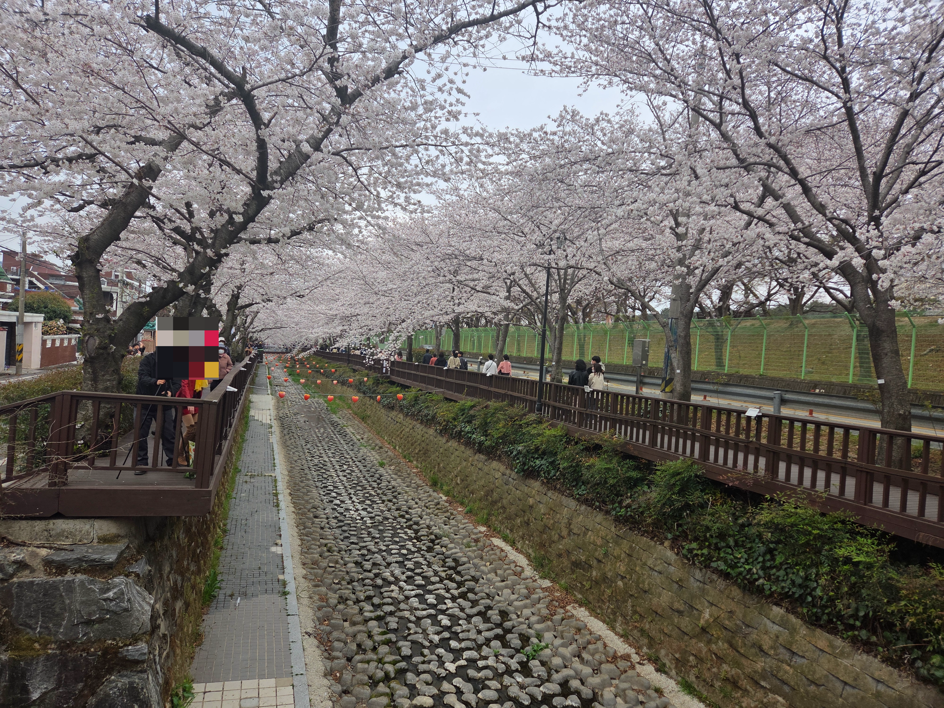 특히 여좌천을 따라 벚나무가 걸쳐서,